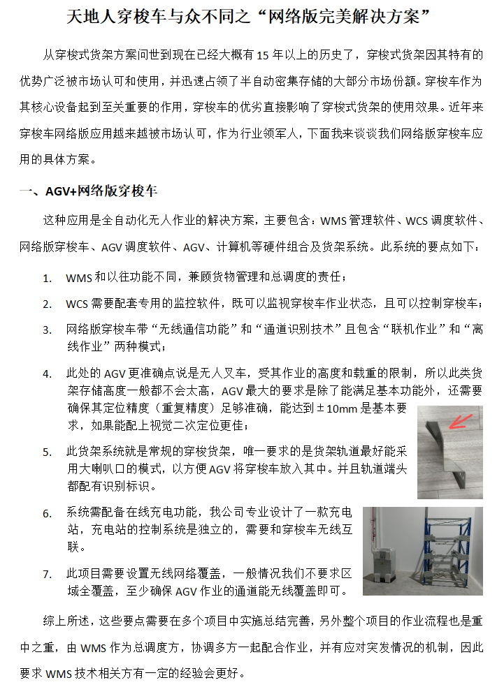 天地人穿梭車與眾不同系列之“網絡版完美解決方案”